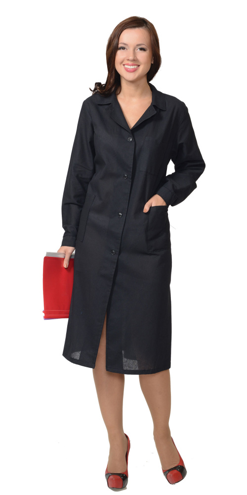 Халат рабочий женский №201 черные, ткань Бязь (ЧЗ) (104-108/170-176)