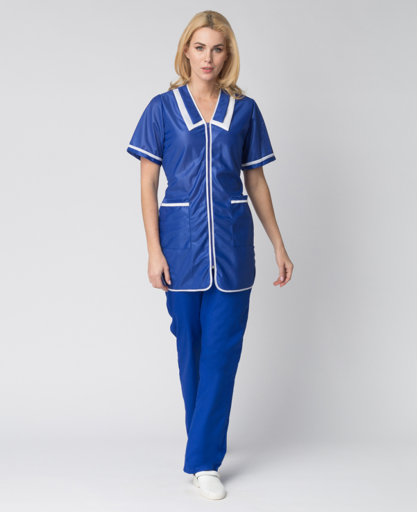 Халат женский на молнии короткий рукав (тк.Нейлон), васильковый (ЧЗ)