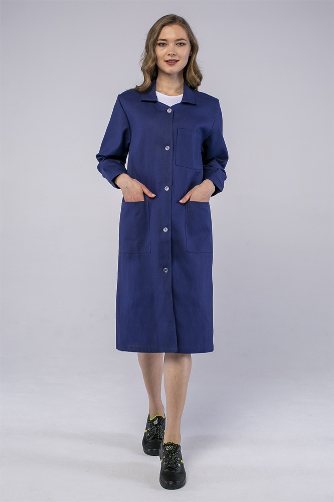 Халат женский рабочий (тк.Диагональ,195), т.синий (ЧЗ) (112-116/170-176)