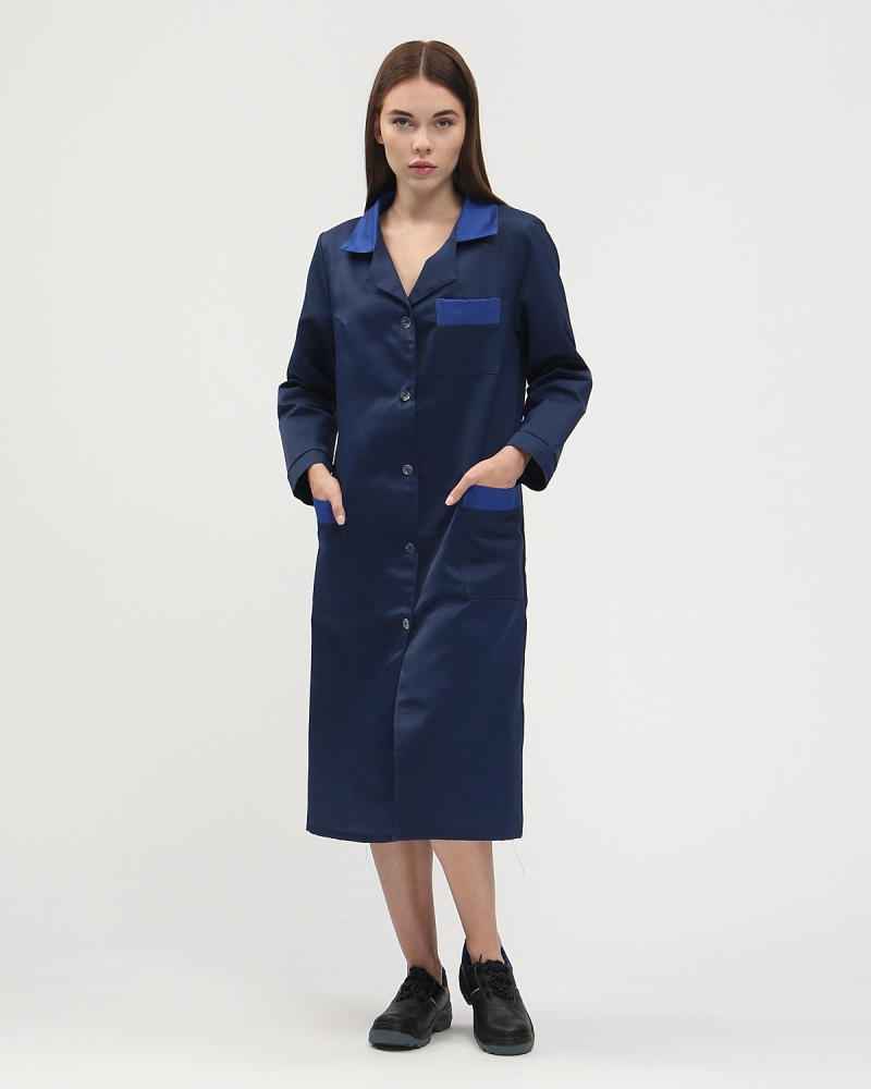 Халат женский Технолог (тк.Смесовая,210), т.синий/васильковый Факел (ЧЗ) (120-124/158-164)