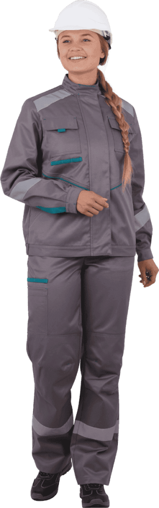 Костюм ГАЛАКТИКА летний, серый-бирюза, женский (Куртка+полукомбинезон) Кос 501 (ЧЗ) ( 96-100/158-164)