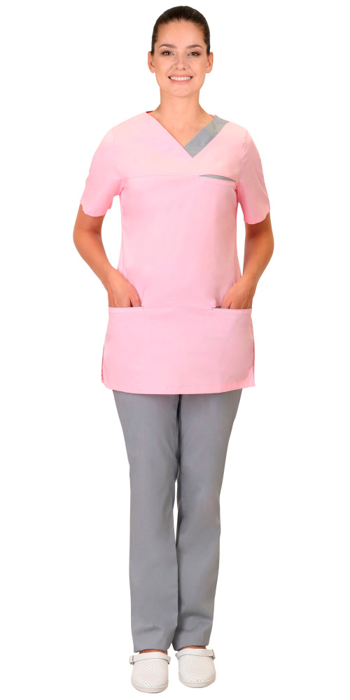 Костюм "КЭТРИН" женский: блуза, брюки, розовый с серым (ЧЗ) ( 80-84/158-164)