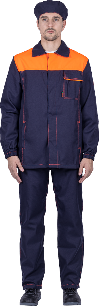 Костюм ХИМОС противокислотный, куртка, брюки, берет, темно-синий/оранжевый (104-108/170-176)