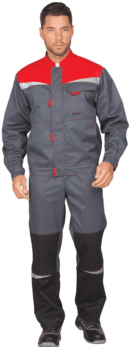 Костюм состоит из куртки и полукомбинезона. В костюме используются детали