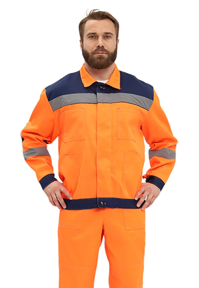 Костюм "ЛЕГИОН" куртка/полукомб. ОРАНЖЕВЫЙ/Т.СИНИЙ, КОС817-461
