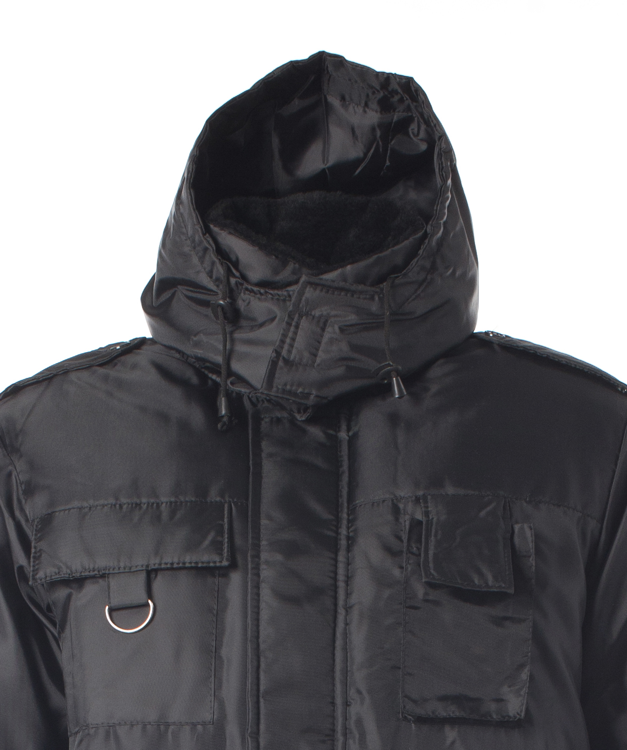 Нагрудный карман под рацию и карман с полукольцом под бейдж.