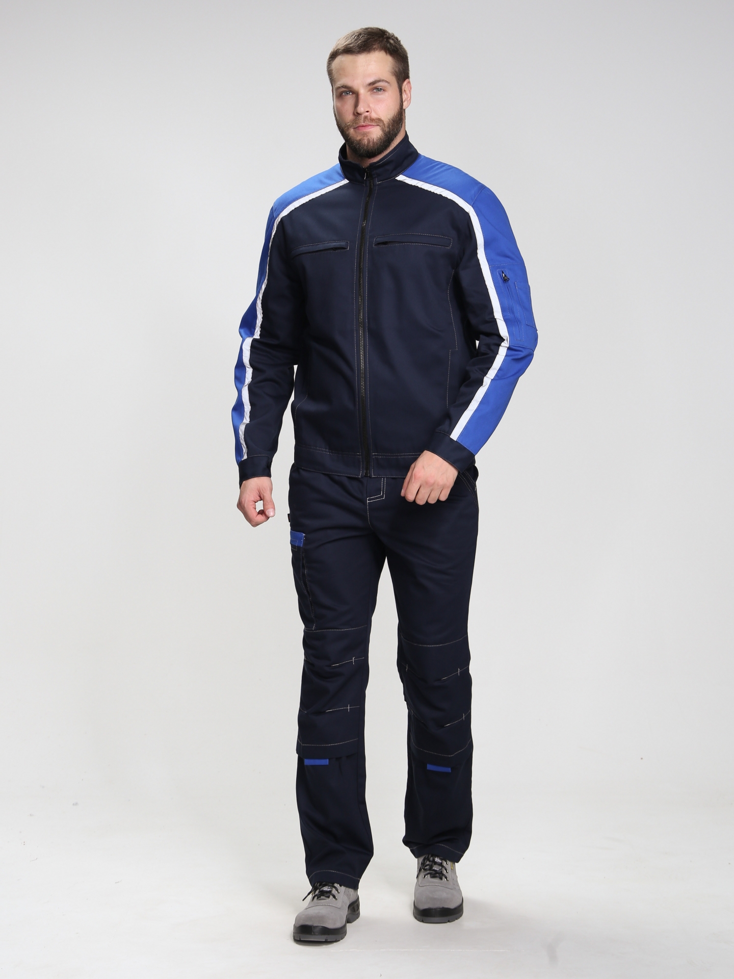 Дополните куртку Алькор брюками и полукомбинезоном из той же серии для создания полноценного защитного костюма, обеспечивающего комплексную защиту и единство стиля вашего рабочего персонала.