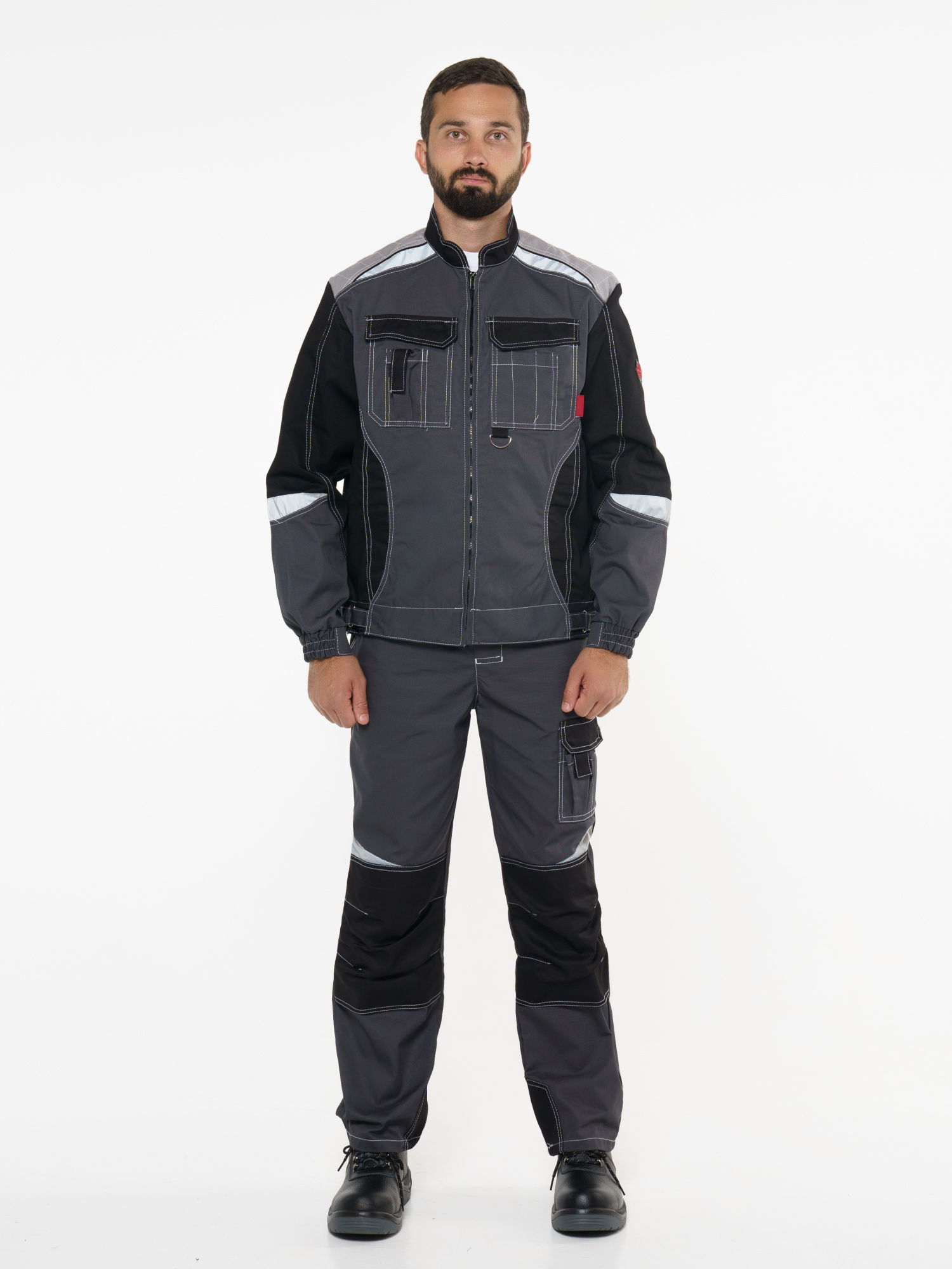 Куртка "Фаворит-Мега" серая с черн., СОП Тк. Rodos (ЧЗ)