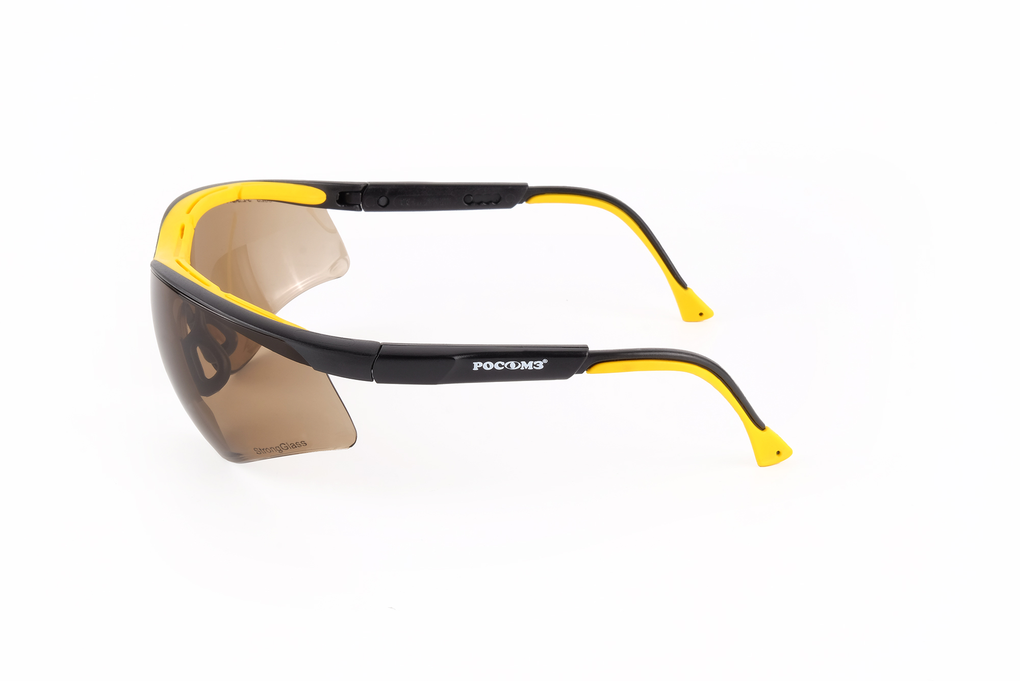 Стекло с коричневым (солнцезащитным) светофильтром из поликарбоната (УФ400) с покрытием СтронГлас 120" (двустороннее твердое покрытие высокого качества, устойчивое к запотеванию до 120 сек., истиранию и царапинам, сохраняющее свои свойства при интенсивной эксплуатации в т.ч. при работе с абразивами).