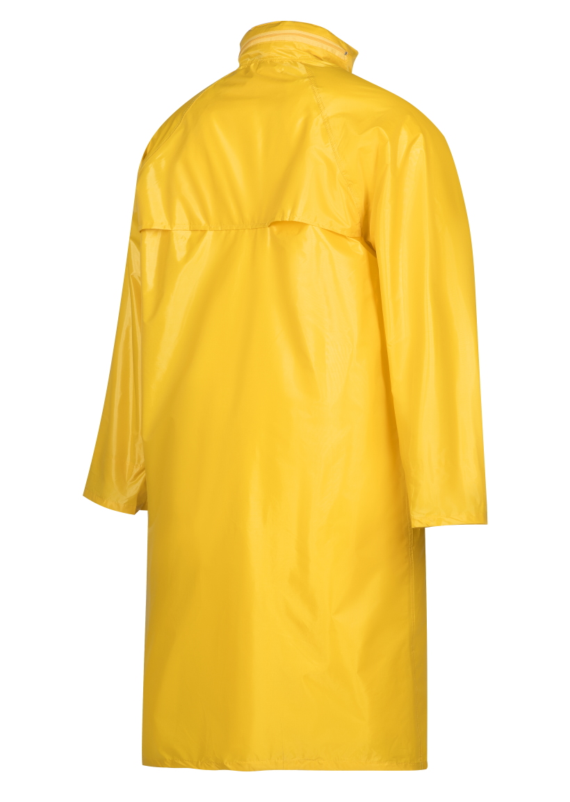 Влагозащитный плащ для защиты от атмосферных воздействий: дождя, ветра, пыли. Плащ с капюшоном (прячется в воротник на молнии), вентиляционными отверстиями под рукавами и по спинке (с сеткой), двумя карманами под клапанами, застежка на двойной ряд кнопок + двойная планка, муфты в рукавах, поставляется в индивидуальной многоразовой упаковке. Используемая конструкция застежки является наиболее надежной для плаща, так как при значительной длине  застежки присутствует риск преждевременной поломки застежки-молнии, а при поломке одной или нескольких кнопок, изделие можно продолжать использовать. Плащ поставляется в индивидуальной многоразовой упаковке. Материал - ПВХ усиленный полиэстером (полиэстеровыми волокнами- нитями) с толщиной листа -0,18 мм, все соединения проклеены ПВХ лентой, цвета темно-синий. Рекомендуется для использования поверх верхней одежды в дождливую погоду во всех отраслях промышленности, на транспорте и сельском хозяйстве  Размеры "европейские", соответствуют стандартам РФ: M, L, XL, 2XL,3XL, 4XL