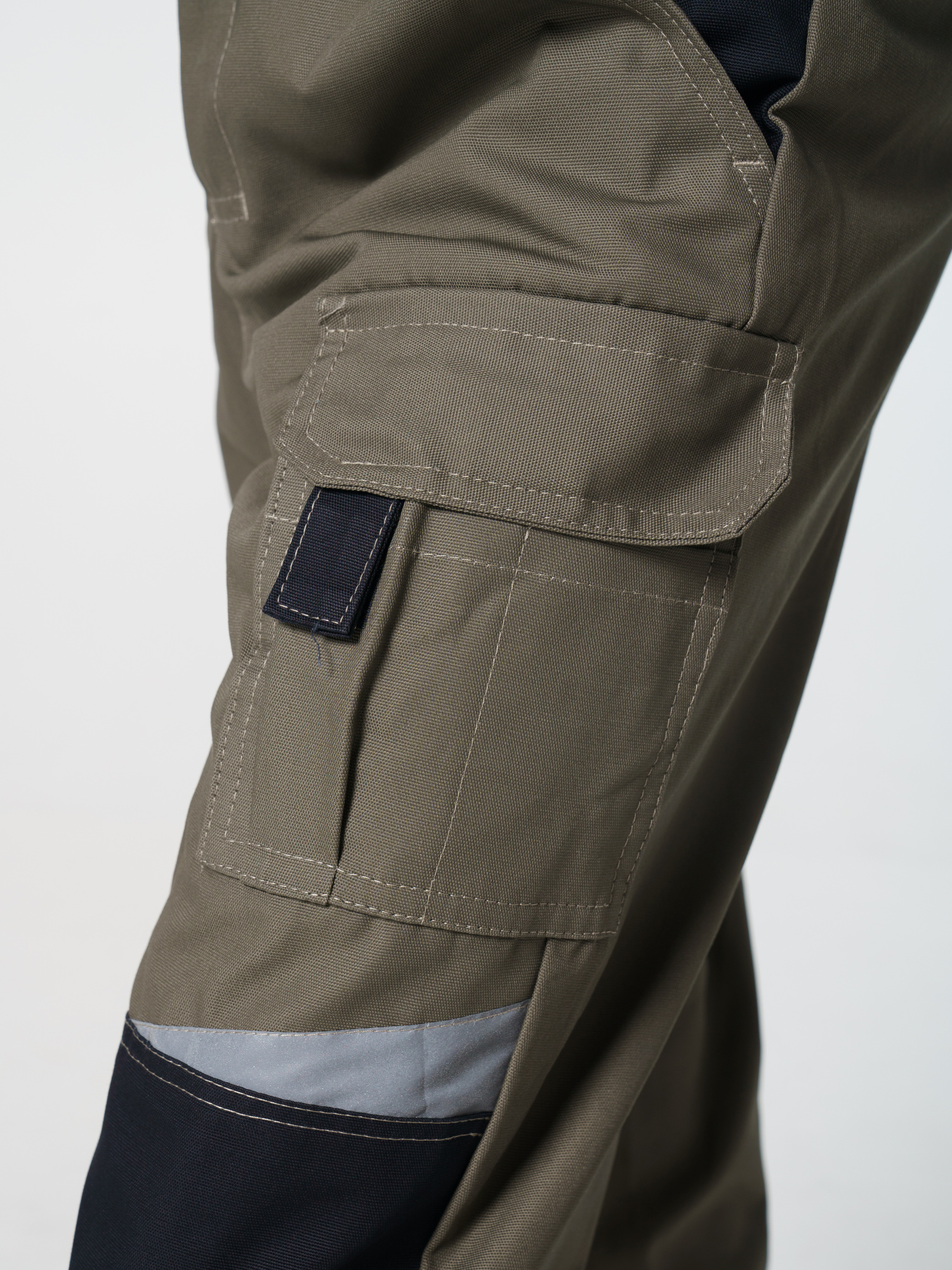 Полукомбинезон с застёжкой гульфика на молнию и застёжкой в боковом шве на пуговицы; с различными многофункциональными карманами; с объемными наколенниками. В полукомбинезоне предусмотрена лента светоотражающая (мелкодисперсная белая) 50 мм фигурной формы.