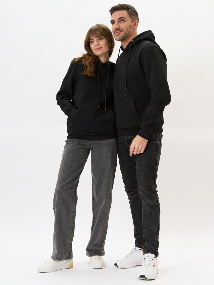 Толстовка (худи) с капюшоном черная начес (ЧЗ) (M)